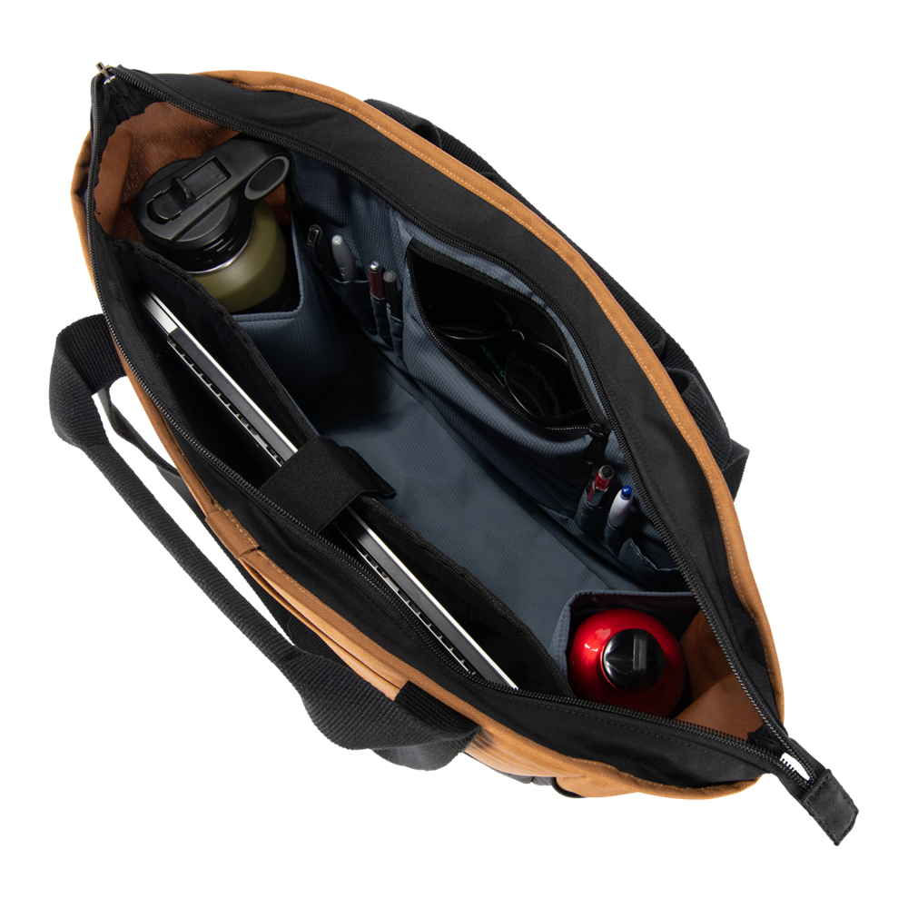 No matter how you get to and from work, keep your essentials organised on the go with this tote. It's made of durable, water-repellent fabric and has a laptop sleeve inside. A slip pocket in back converts into a trolley sleeve so you can attach it to the handle of your suitcase.
