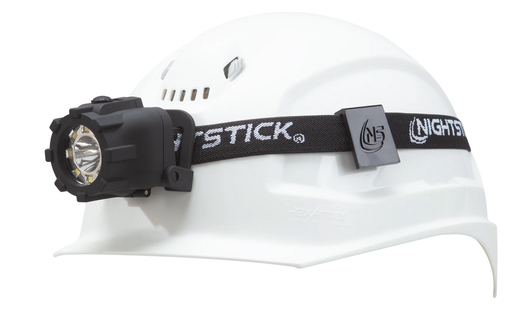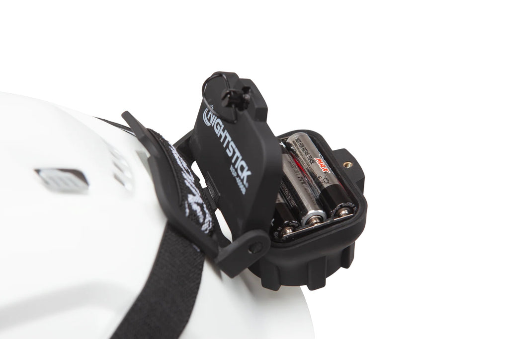 The NSP-4606B Dual-Light Headlamp features a multi-position tilt head design and has a tight-beam long-throw spotlight designed for distance illumination combined with a wide-beam close area floodlight. This product features a single top-mounted switch that activates a 140 lumens spotlight mode, a 50 lumens floodlight mode, and a 150 lumens Dual-Light mode that turns on both the spotlight and floodlight at the same time. Power comes from three AAA batteries (included).